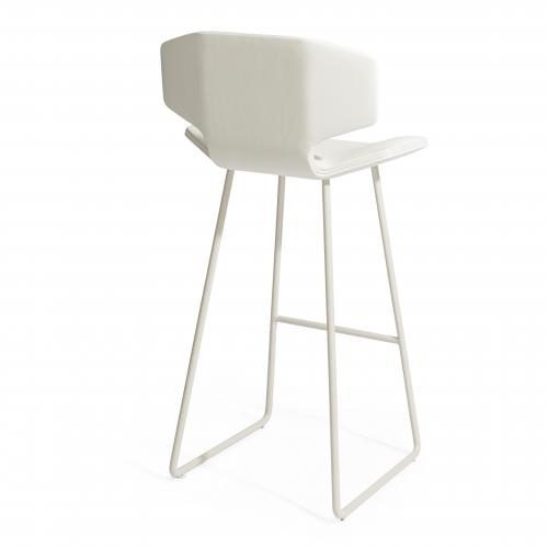 Sırt dayanağı olan tabure, bütünü kavisli kontrplak yapısına sahip, ayakları paslanmaz çelik borudan yapılmıştır. Deri veya kumaş kaplama, kenarlarındaki eşleşen borularla tamamlanır. Metal parçalar, metal yüzey seçiminde yer alan herhangi bir renkle lake edilebilir veya toz boya ile kaplanabilir.